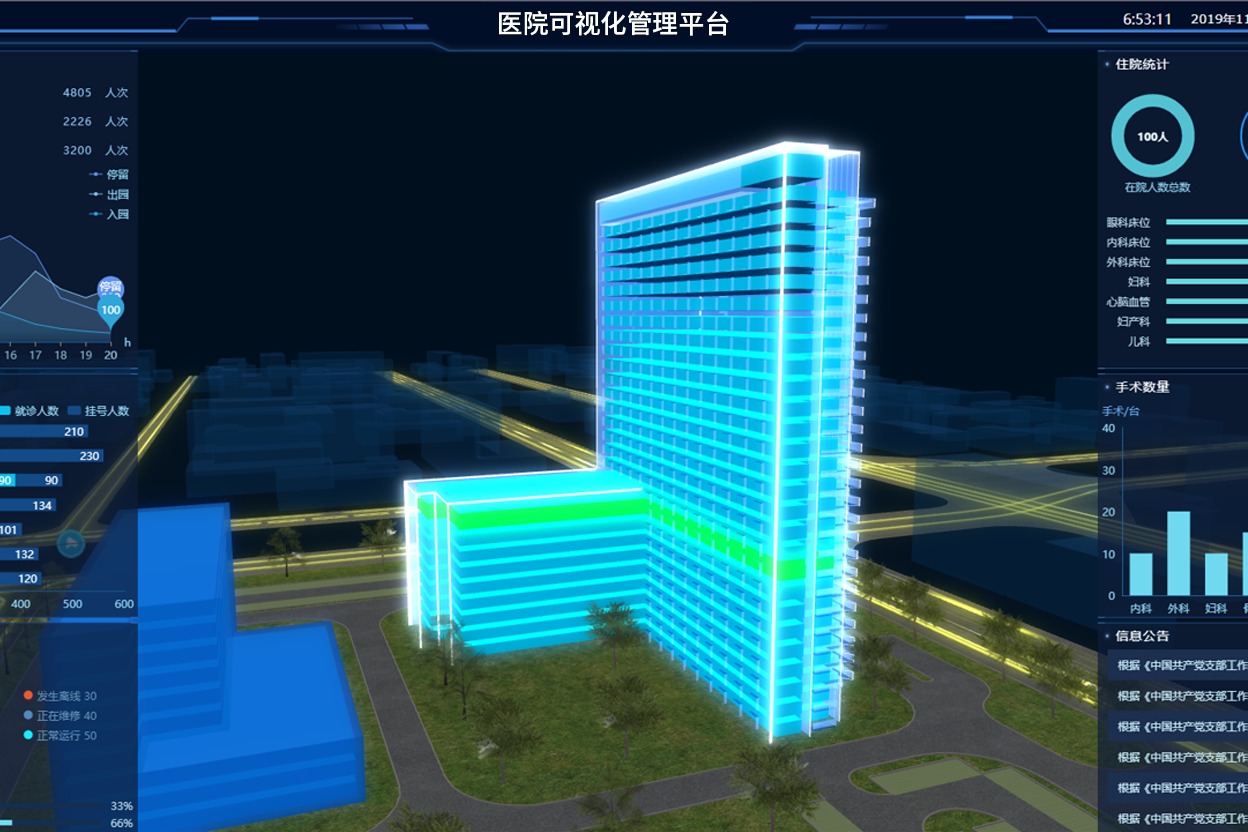 醫(yī)院基礎設施的統(tǒng)一管理,并以3D效果展示醫(yī)院全貌,現(xiàn)擬建設醫(yī)院監(jiān)控可視化平臺,實現(xiàn)對醫(yī)院基礎設施層的環(huán)境、視頻、資產(chǎn)設備等設備的實時數(shù)據(jù)、設備狀態(tài)、告警等的管理。